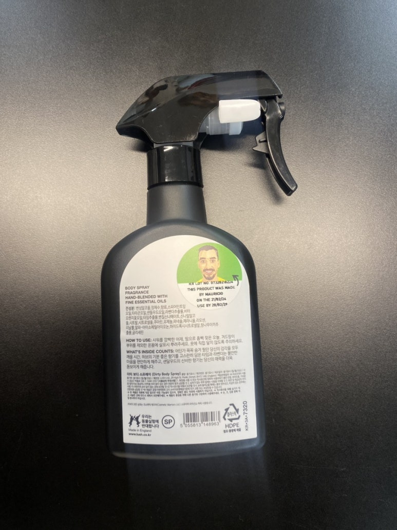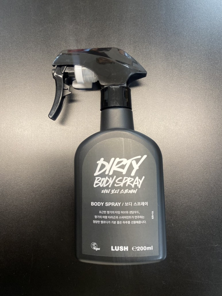 : 생일 선물로 받은 러쉬의 더티보디 스프레이입니다. 냄새 끝장납니다. 무조건 추천합니다. 하나씩 장만 추천드려요!!
